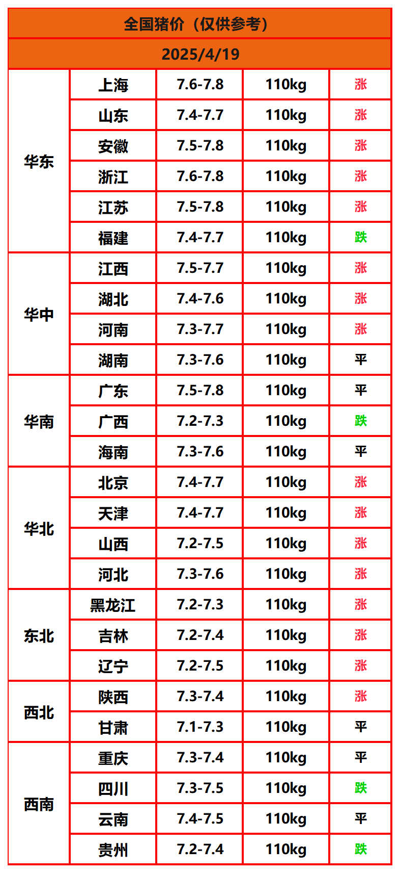 今日猪价 | 2025年4月19日全国猪价行情一览表!