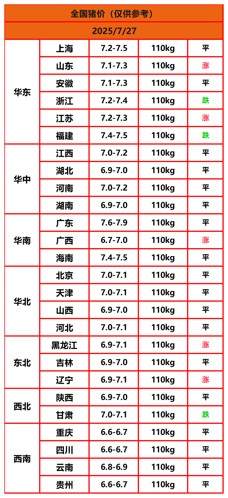 2025年9月28日猪价,今日全国猪价行情走势:8涨8平10跌。免责声明:部分资料来源于网络收集,以供给大家学习、交流为... 【详情+】
